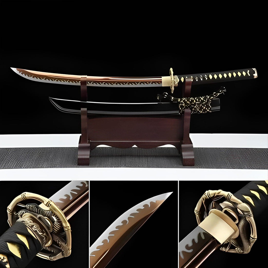 Handmade Japanese Wakizashi Viper Short Sword Baked Gold Blades