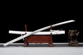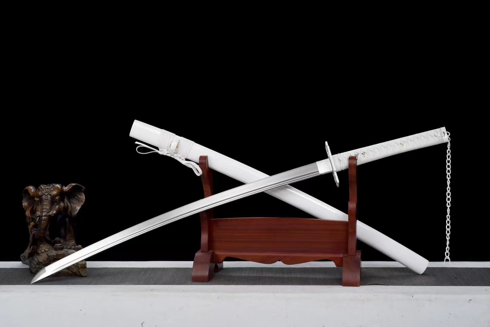 The white saya (scabbard) is made of high-quality hardwood and coated with a premium natural lacquer finish, offering a sleek and elegant appearance that complements the sword's overall design. The lacquer not only enhances the visual appeal of the saya but also provides additional protection, ensuring that your sword remains in pristine condition for years to come.