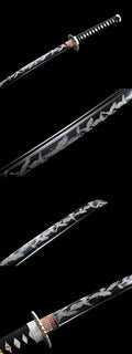 Hand Forged Japanese Samurai Katana Eagle Carbon steel Blackened blade engraving