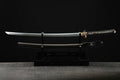 Hand Forged Japanese Samurai Katana Frog Prince Pattern Steel Gilt Silver Guard