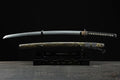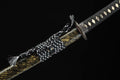 Hand Forged Japanese Samurai Katana Sea Wave Cutter Plate Pattern Steel Yellow