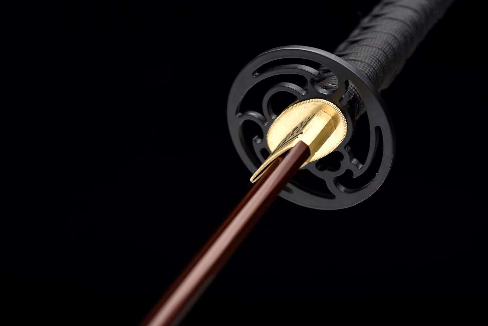 Blade: The reddish hue of Hamon T10 steel gives this 71 cm blade a striking appearance, with the red throat adding an unexpected touch of color that draws the eye and arouses interest.