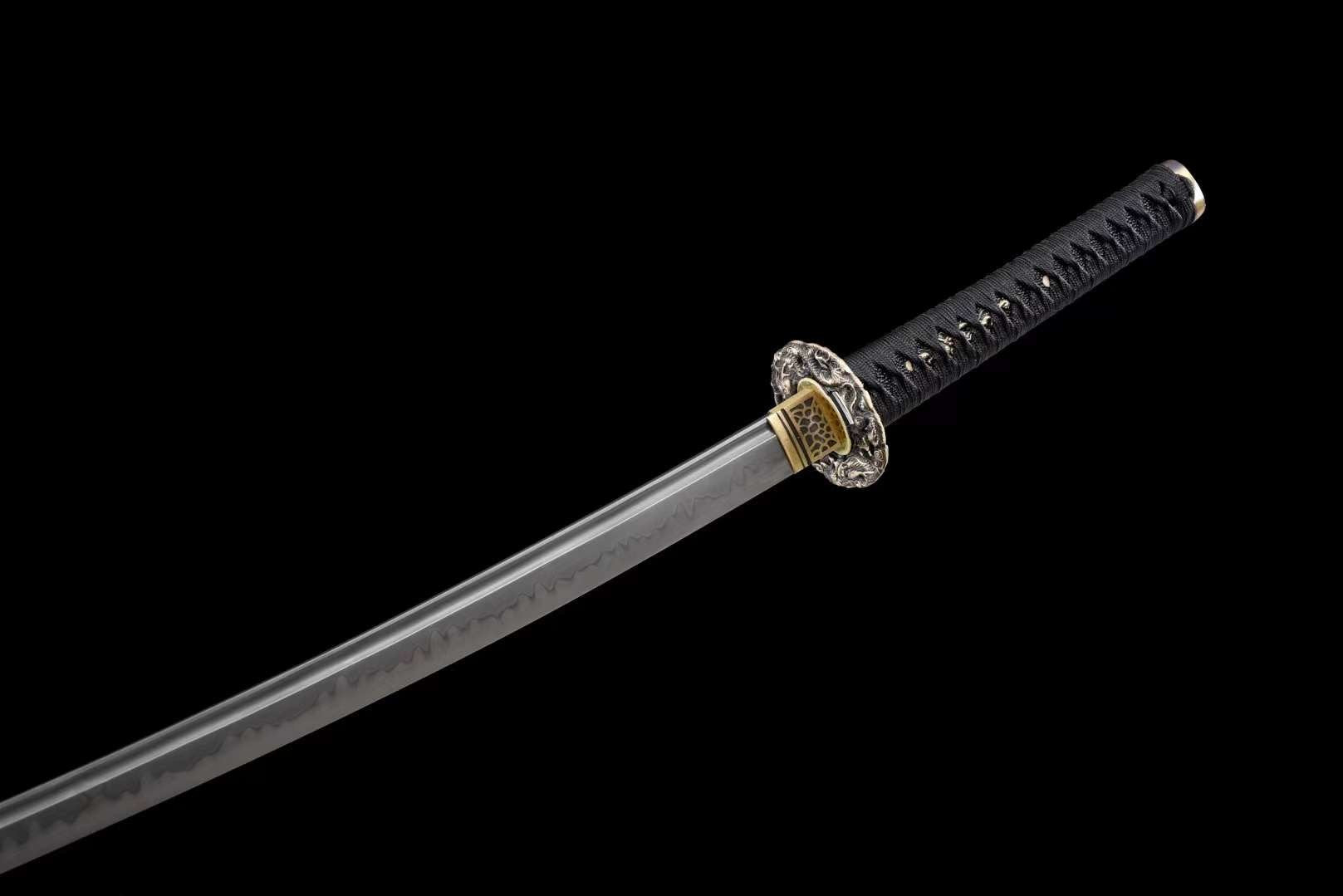 Premium T10 steel: The blade, forged from T10 steel, is renowned for its superior strength and ability to maintain a sharp edge. Special clay heat treatment gives the katana a distinctive hamon, a sign of its strength and refined aesthetic.