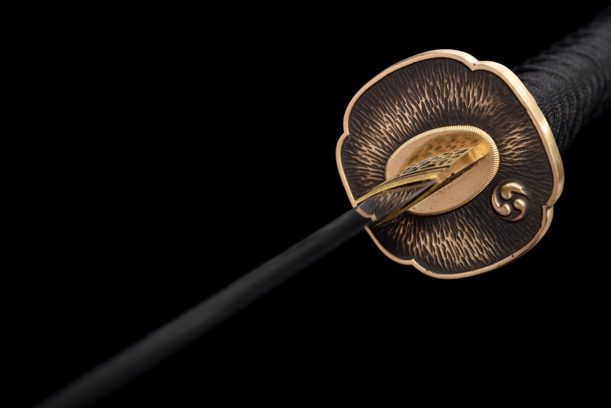 The lacquered magnolia wood handle is covered in stingray fish leather, offering a texture and grip that marry beauty and functionality. The tsuka's design is faithful to traditional craftsmanship, combining comfort and aesthetics.